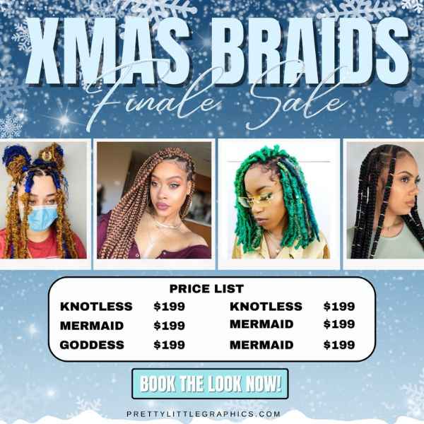 “Chic Braid Cheer: DIY Xmas Price List Flyers for Trendsetting Holiday Styles!”