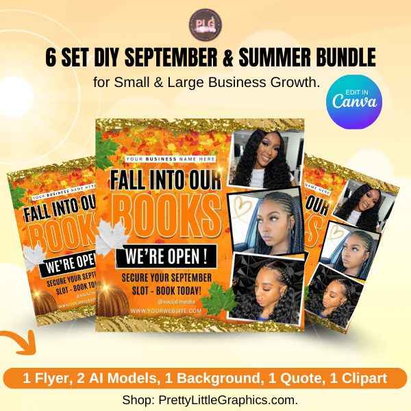 Grab our September DIY flyer bundle! Editable Canva templates perfect for beauty, hair, and printing businesses. Save time, look professional, and boost sales with stylish flyers.